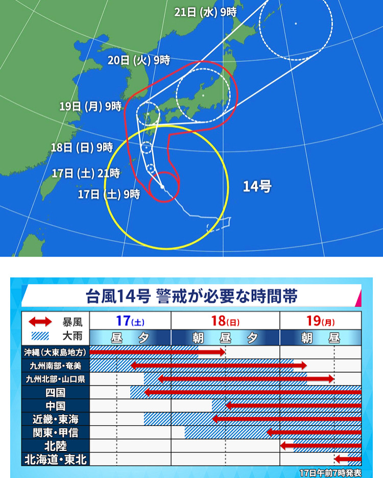 天気予報でも『猛烈な』台風14号、と表記してあります💦